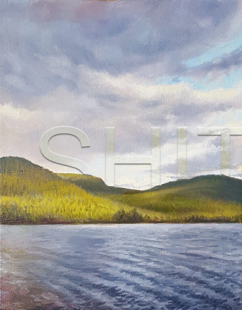 I was feeling pretty passionate about this idea and my art just a few weeks ago, and now that the rush is over, I’m left wondering what all the fuss was about. The thing about negativity and expressing your feelings is… at one point, when does it become just another problem? Where’s the line between catharsis and useless ruminating? Adding text to the landscapes certainly made them less precious, but in the end, it didn’t advance me along my path. Ultimately, I think it might have been just a temporary diversion (possibly influenced by the Prednisone I’m taking for my RA flare – and this wouldn’t be the first time Prednisone led me astray, either!). I’m looking at these images now the way someone might survey their property after a violent storm has passed: I acknowledge that there was no stopping it, and I just hope that there’s no significant, long-term damage.