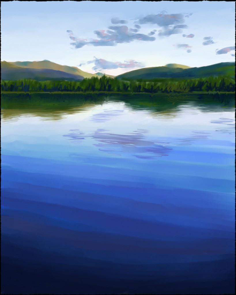 Anyways, after all that heartache, I am pleased with the final result! I’ll have to make some repairs to the right side of the painting to make up for what the tape lifted off accidentally, but otherwise, this might be one of my favourites. I just never want to see it again! 😉