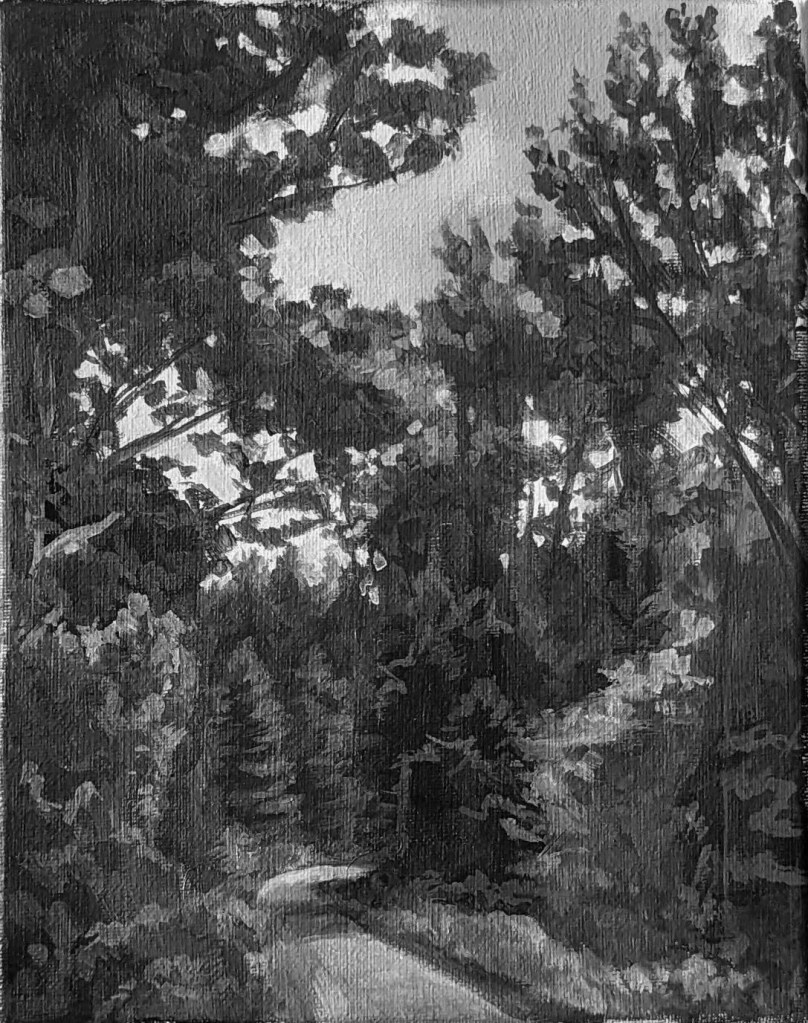 Not gonna lie – this exercise in tinkering with values took much longer and was far more difficult than I had imagined it would be. I took countless progress photos and brought them into Photoshop so that I could compare the values, and not matter what, I always seemed to be slightly off the mark. Worse yet, the original brush marks in the first version of the painting disappeared the more adjustments I made, and I found myself missing that original, imperfect painting.
