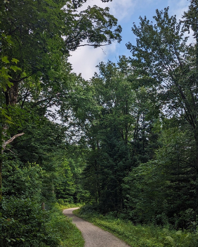 With all my paintings of lakes in recent days, I’m feeling a little waterlogged, so I thought I’d expand my painting horizons and try to paint a forest scene (“branching out” as it were). As a reference, I used one of my photos of the path that links Lac Monroe to the Chutes du Diable up at Mont Tremblant National Park