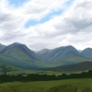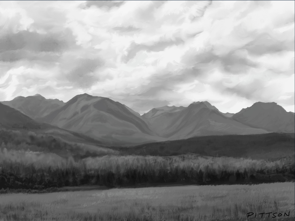 Confession time: this New Zealand landscape has been sitting on my easel as a faint pencil outline for almost 3 years. THREE. YEARS. I wasn’t satisfied with my first attempt, so I plugged away at different studies, first as a digital colour test, and then as a digital value study.